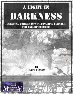 I asked the Call of Cthulhu RPG Facebook group for some one-shot suggestions, and this lead me to two suggestions. I was really looking for something different and fun and these two really stood out. One was Moonglow by John A. Almack and I will review that one another time. The other is A Light in the Darkness – Survival Horror in the WWII’s Pacific Theater by Matt Puccio. They had me at World War II and survival horror.