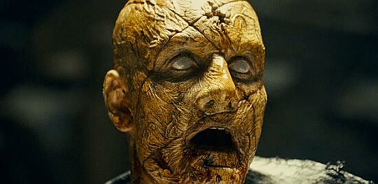 Wirth then gets out of the cellar and begins his terror. Wirth is now a zombie-like figure with occultic symbols carved into his gray hairless skin. It is revealed throughout the story that Wirth has a plan to eventually awaken his third eye, which will mark the pinnacle of his power. The fact that its Halloween night and a lunar eclipse works in there somewhere too. Wirth’s terror includes killing and then subsequently raising horses and dogs into crazed zombie animals, as well as a few victims (reminiscent of Evil Dead). Lots of blood and gore follows until things begin to fall apart.