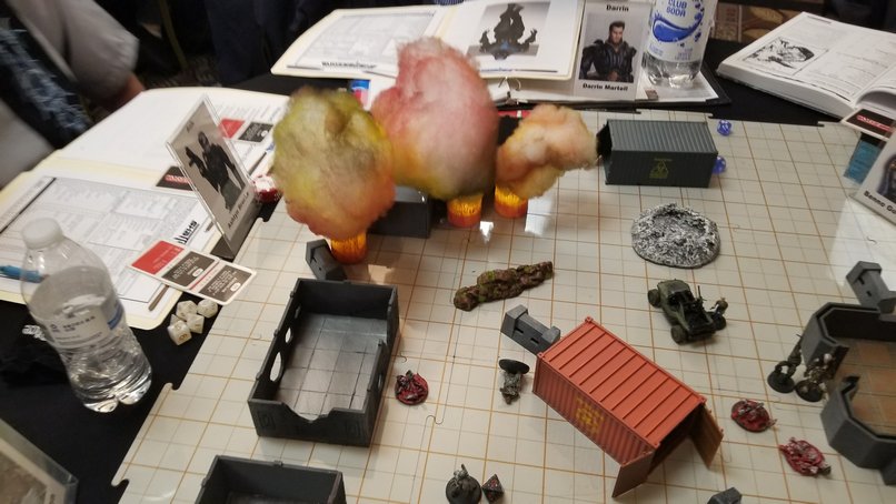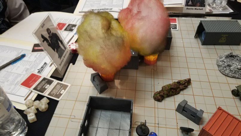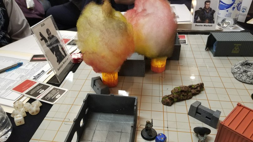 Some crafts I used in my Shatterzone RPG at MACE 2017 – billowing fires (explosions), and body markers. Inspired by many crafts from here.