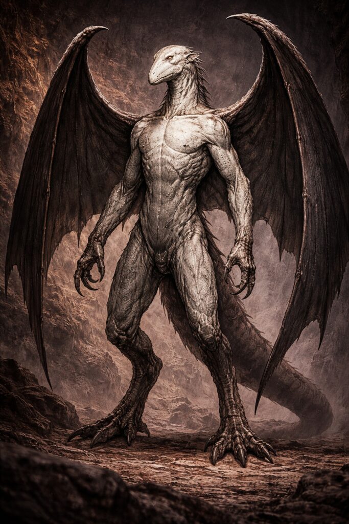 Description: They are beasts of Chaos, given physical form. They are semi-intelligent, bipedal tailed creatures with a thick leathery carapace covering their bodies. They are usually taller than the average human, and have wings that are used for flight.