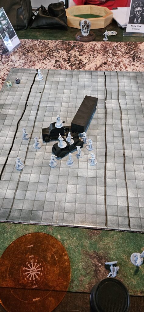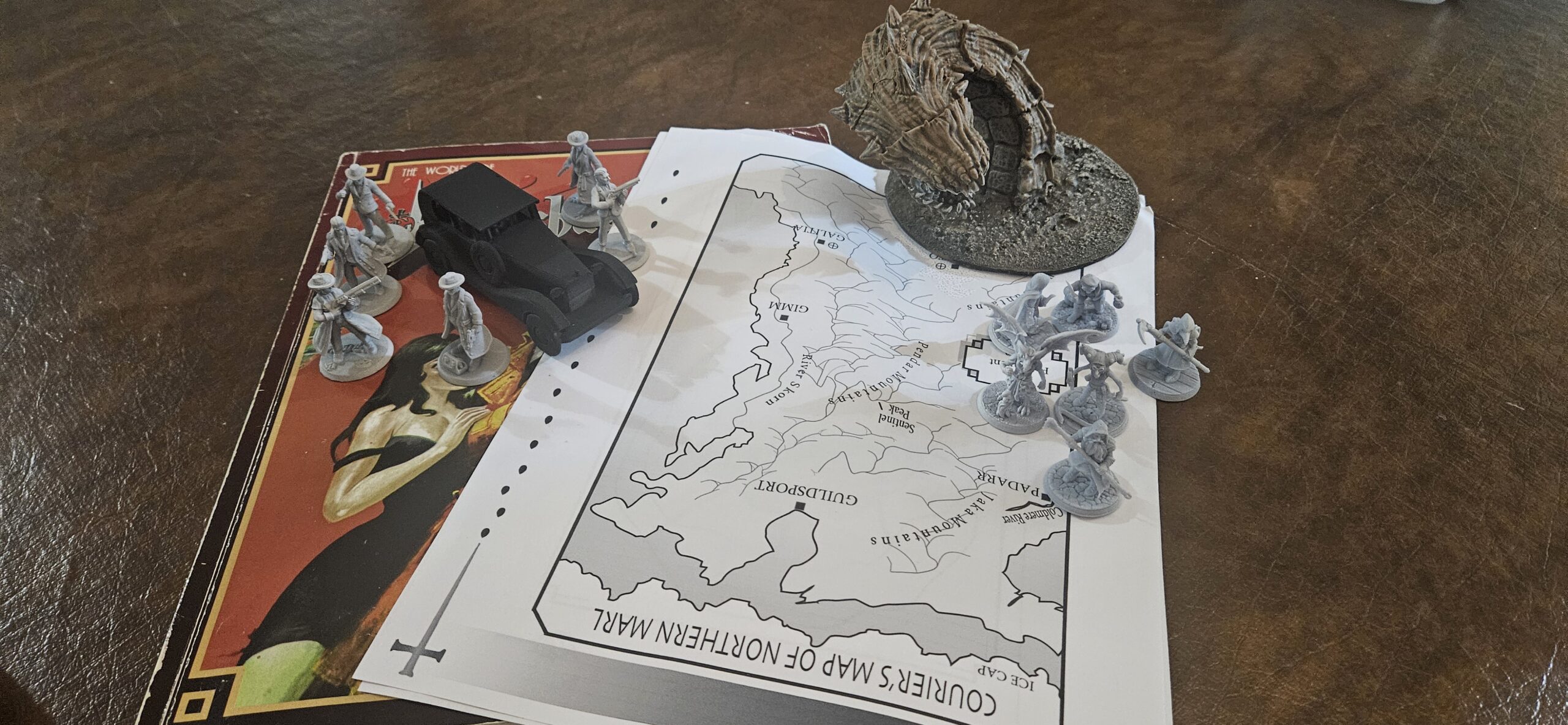 Took the background give in Fires of Marl – The Doom Clock – and put together a plot where the players are gangsters (using the characters from Missed Dues) that are investigating a stollen object from an ally in Selastos. Some one is stealing all the control items of the clock homunculus. Having the players know nothing about the clock is key. It was really fun but definitely not a one-shot for a convention.
